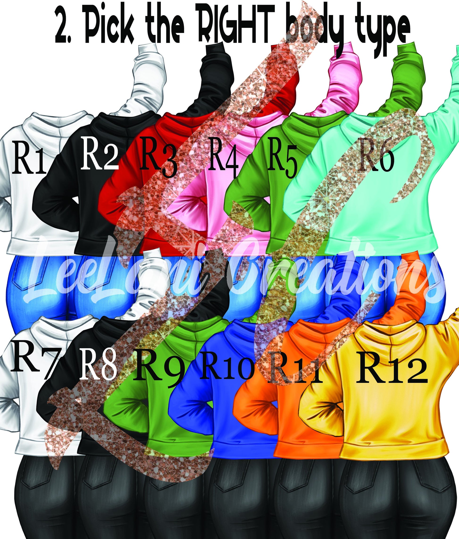2- Pick the female body type/color for the girl on the right