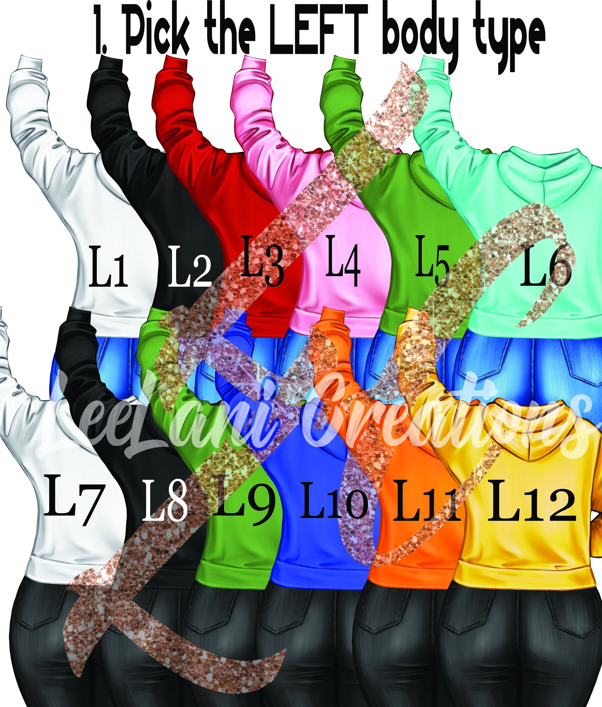 1- Pick the female body type/color for the girl on the left