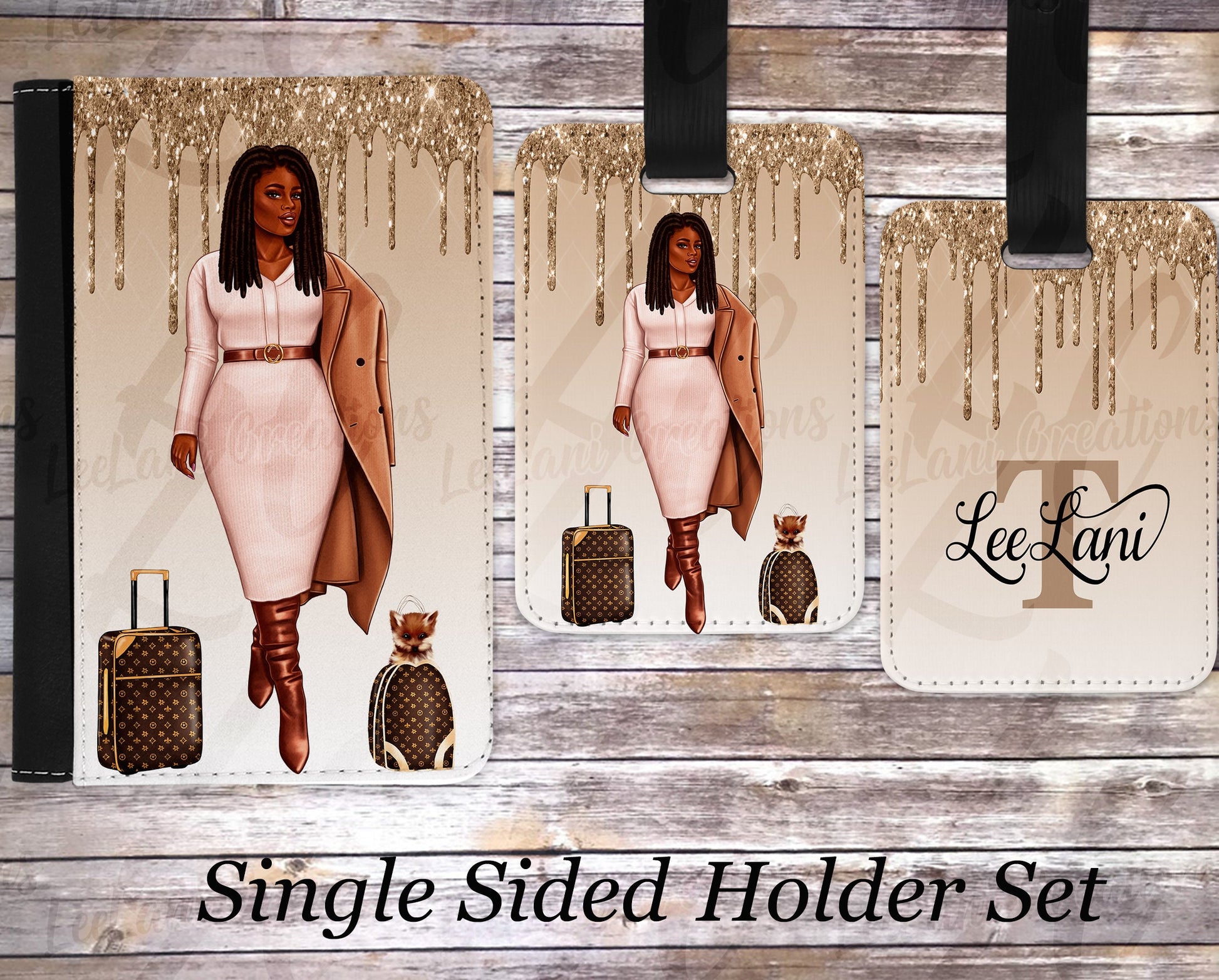 Make every trip unforgettable with our exclusive Woman with Locs passport holder and luggage tag set. Embark on your next adventure with a touch of sparkle and a whole lot of style!